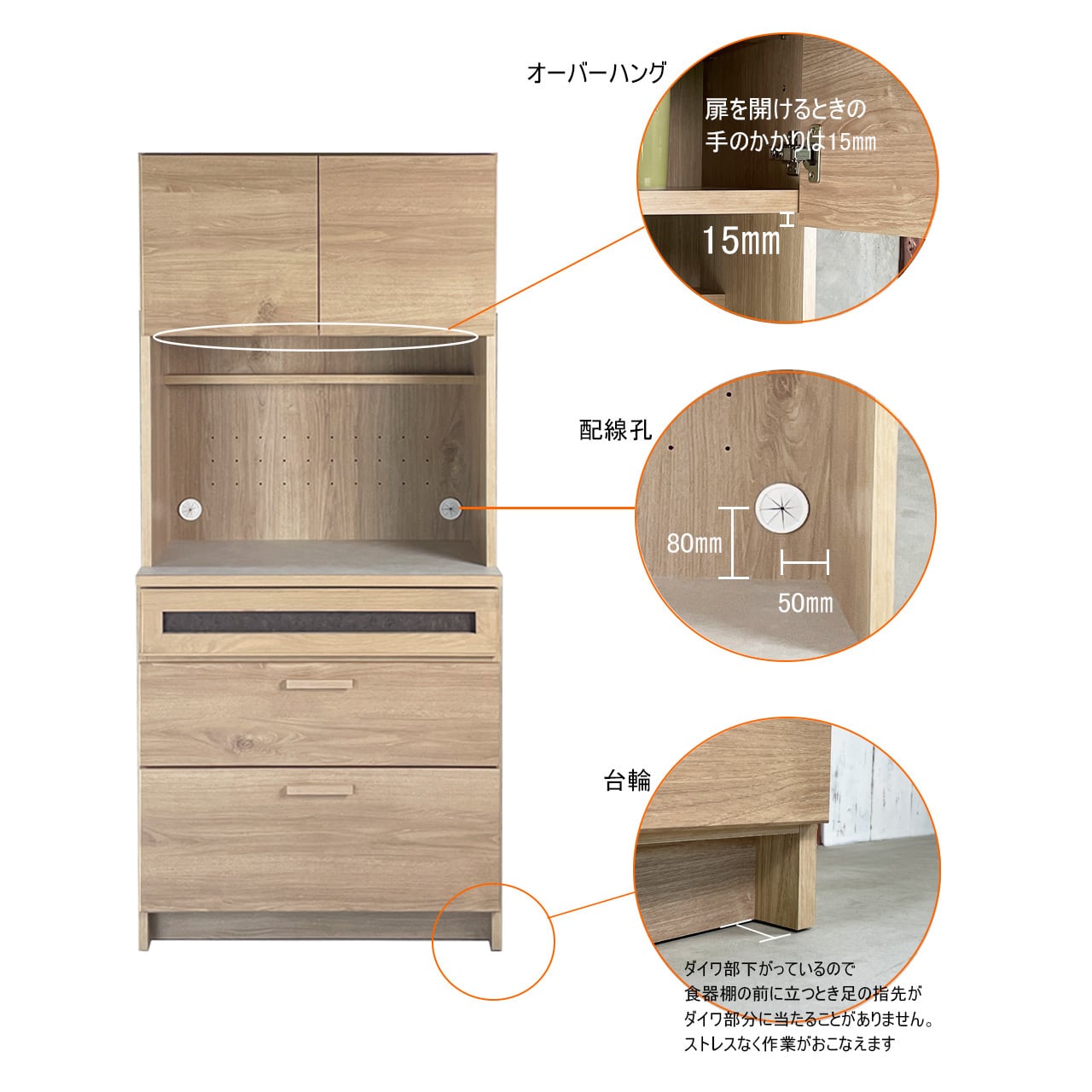 アイボリーの天板とナチュラルな色合いの前板が、