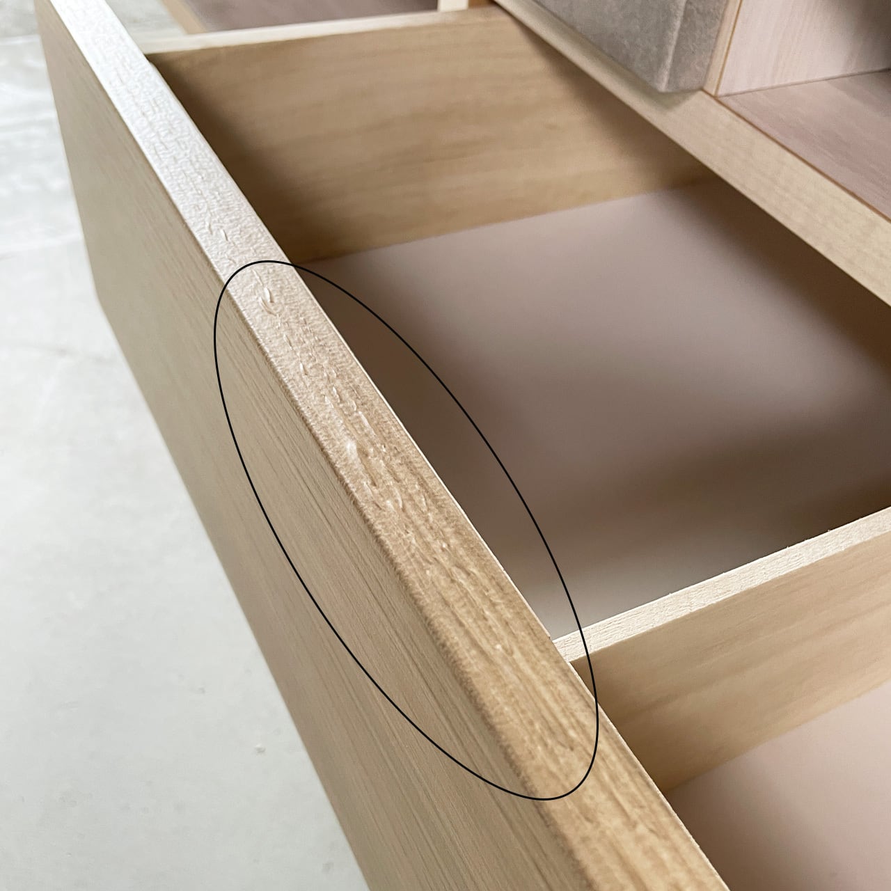 右前板の上小口部分に、少々のシートの浮きがございます。