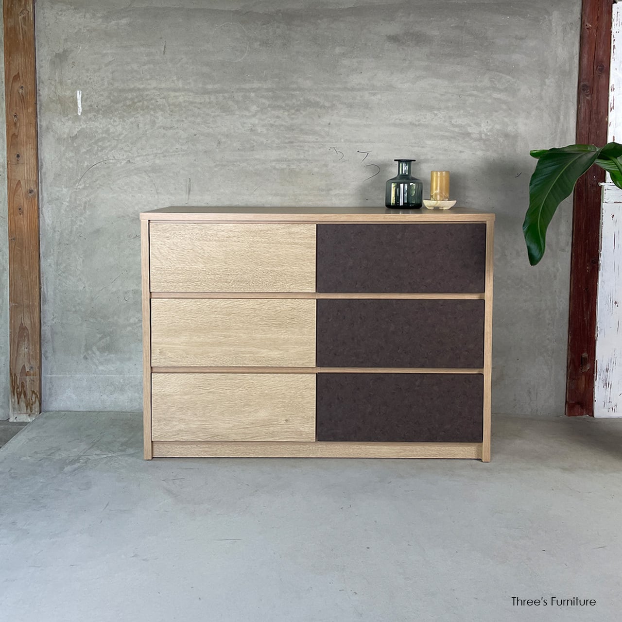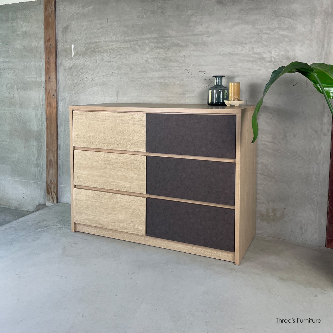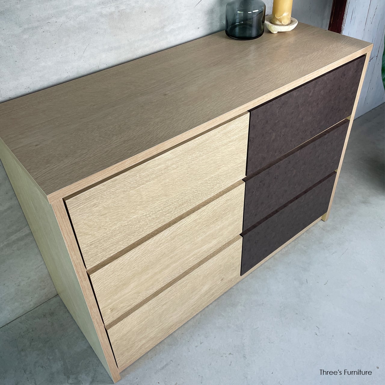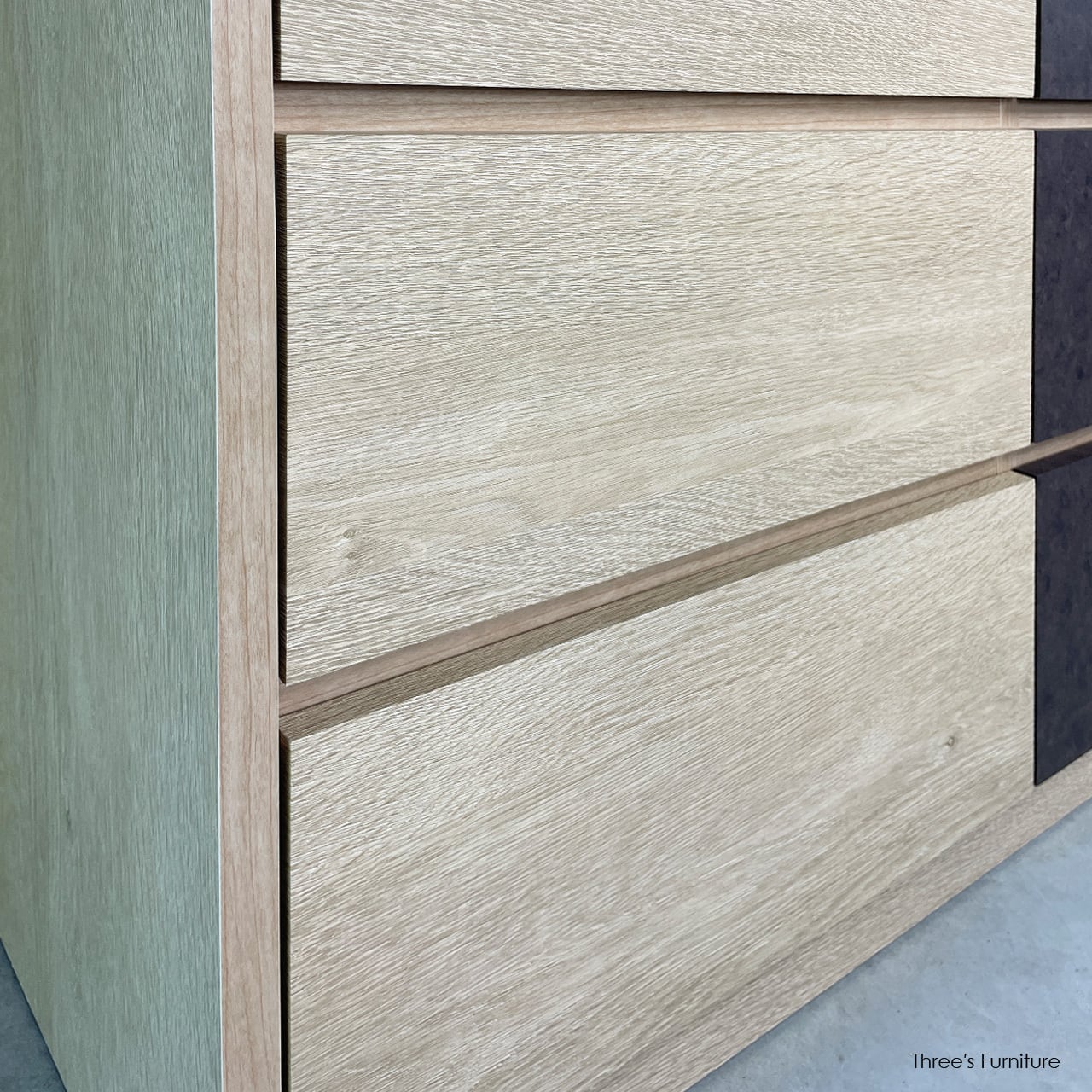 木目柄と抽象柄の良さを強化紙で表現した落ちいた雰囲気のモダン家具です。