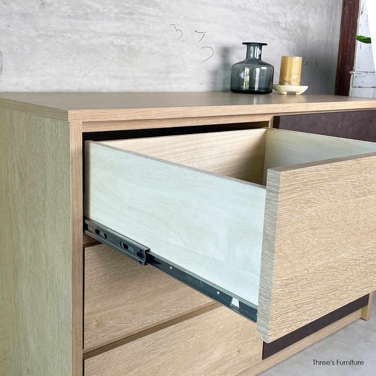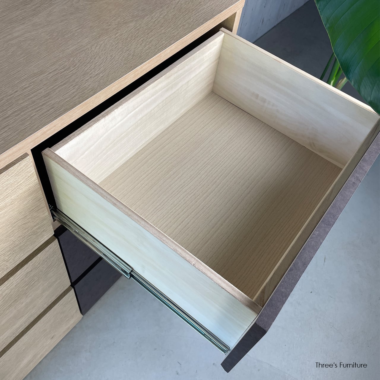 引出しは全段フルスライドレール付きで、たっぷり収納できます。