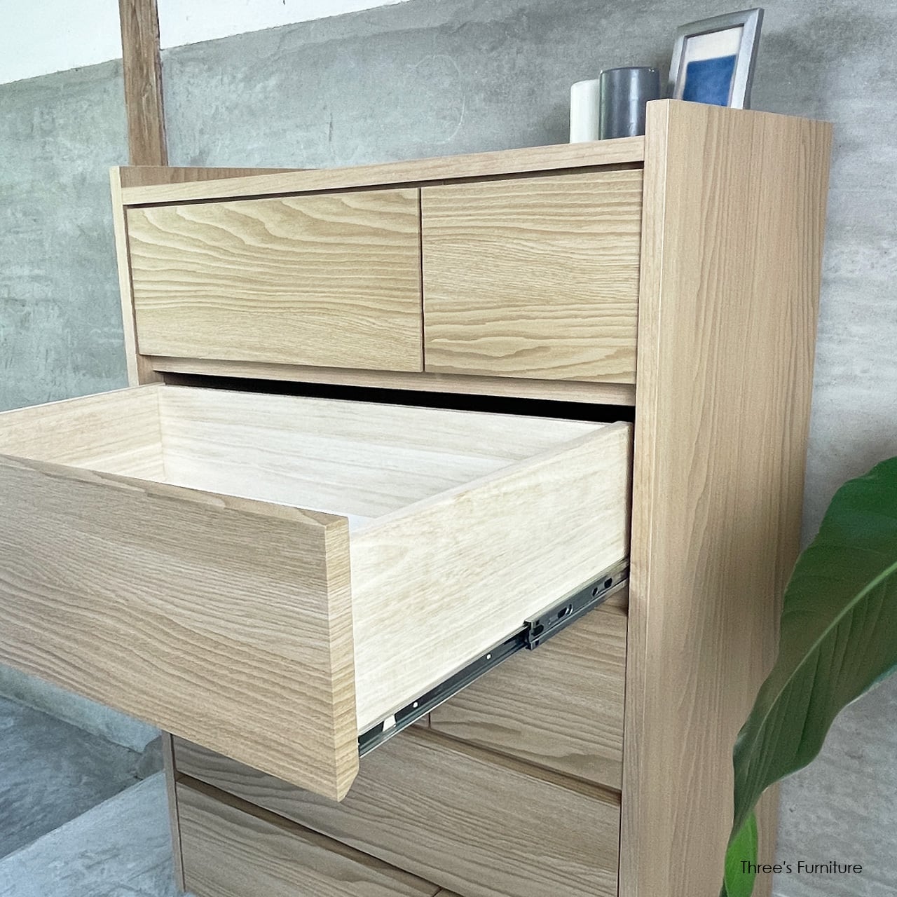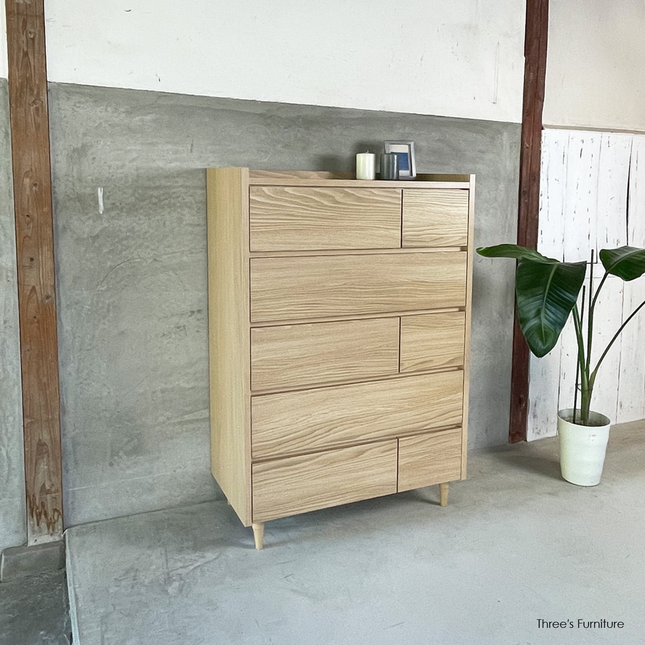 3タイプの引出しを組み合わせることで、シンプルながらも表情のあるデザインになっています。