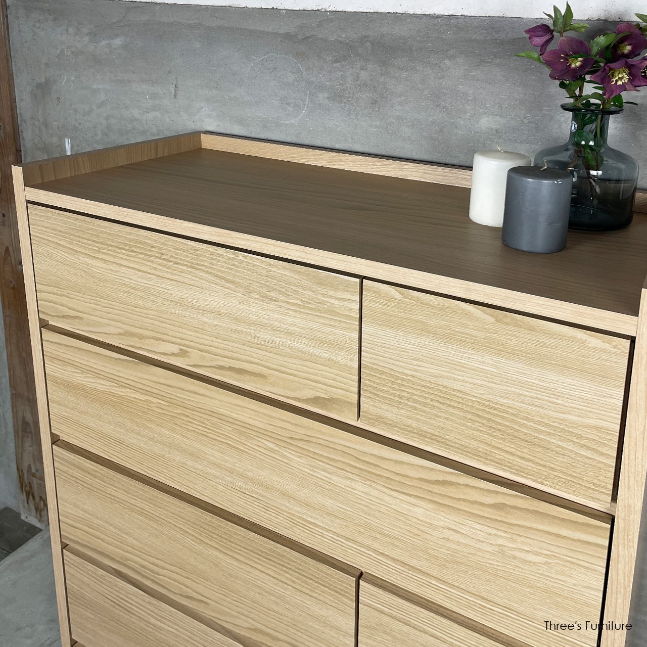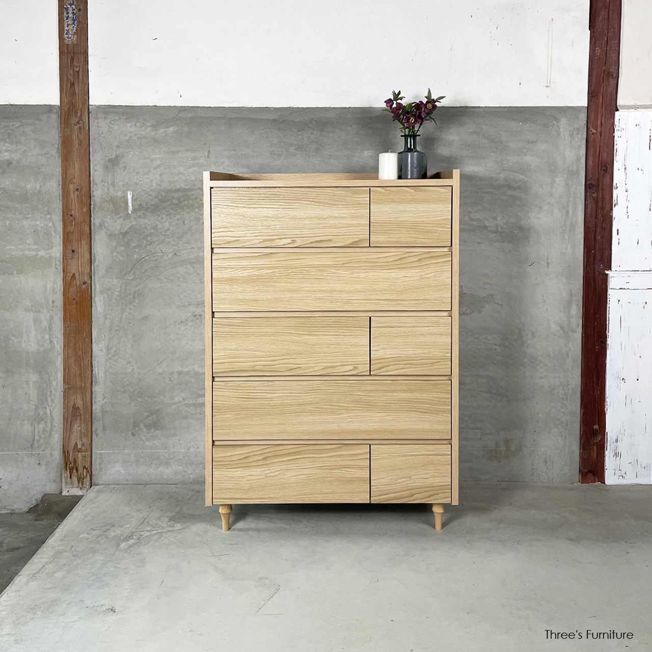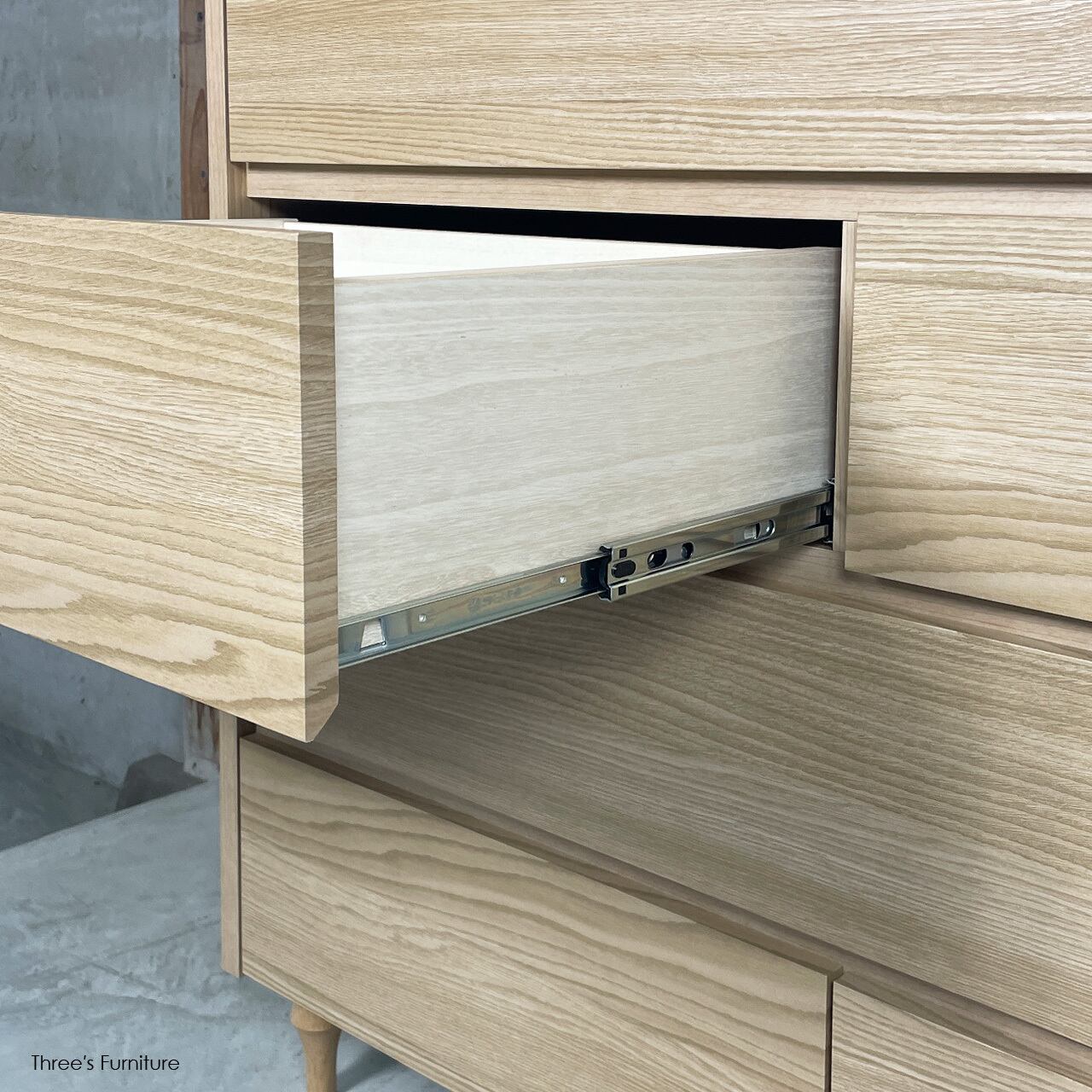 3タイプの引出しを組み合わせることで、シンプルながらも表情のあるデザインになっています。