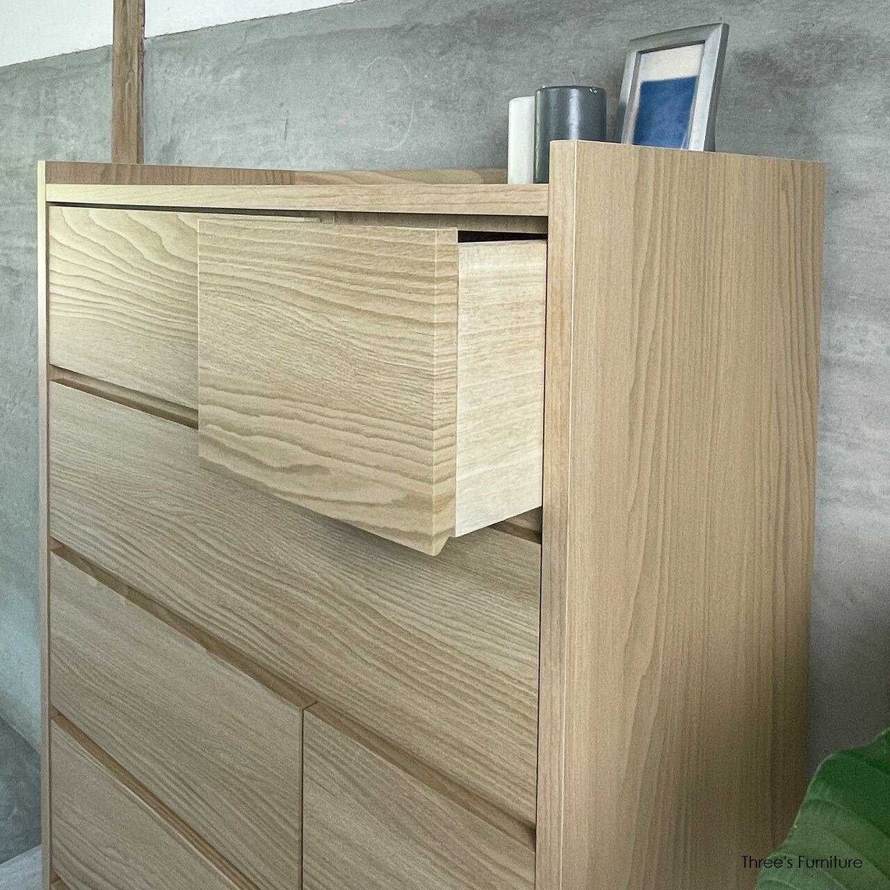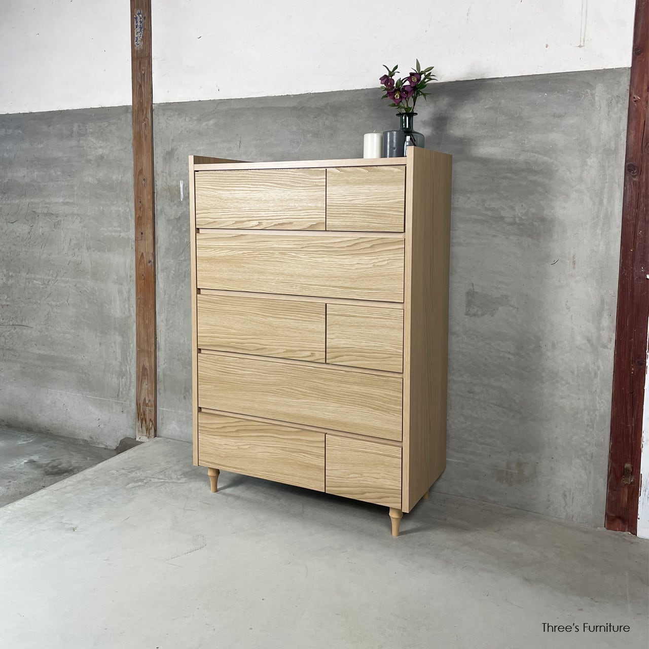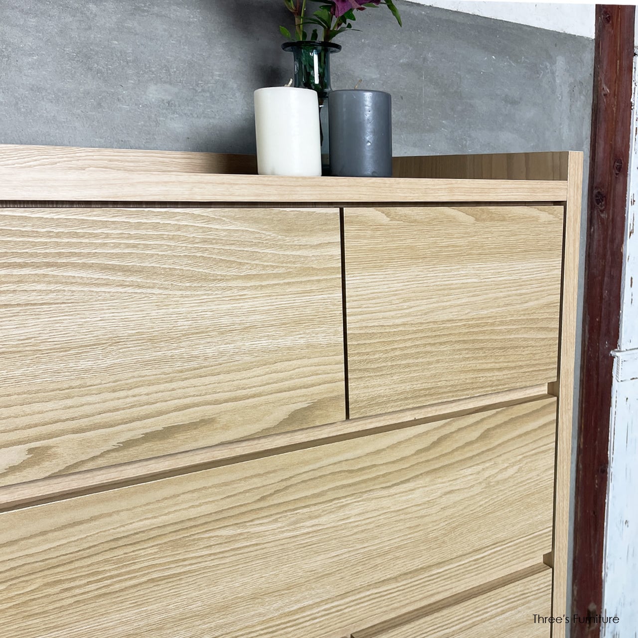 3タイプの引出しを組み合わせることで、シンプルながらも表情のあるデザインになっています。