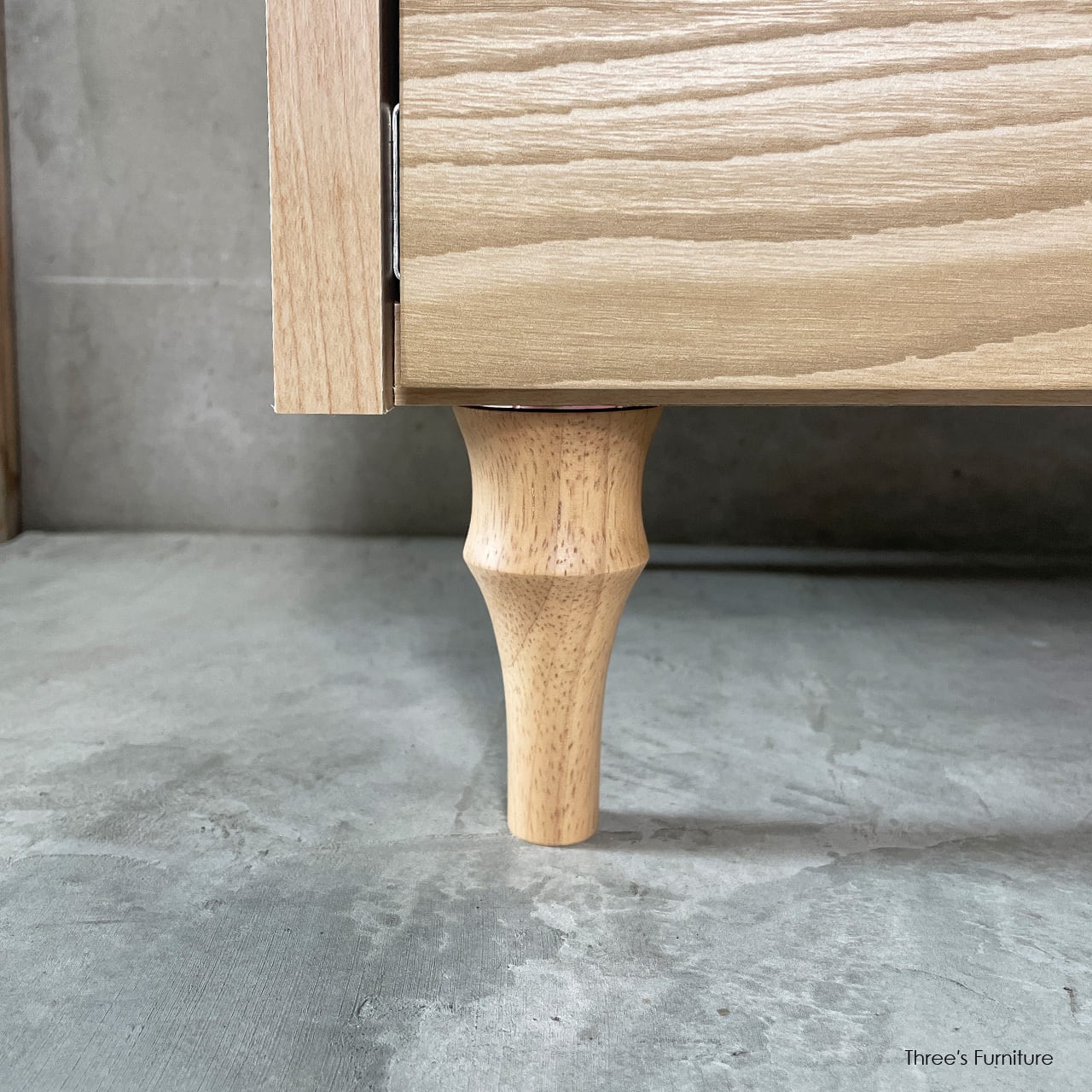 ろくろで加工した段差のある木製脚が、